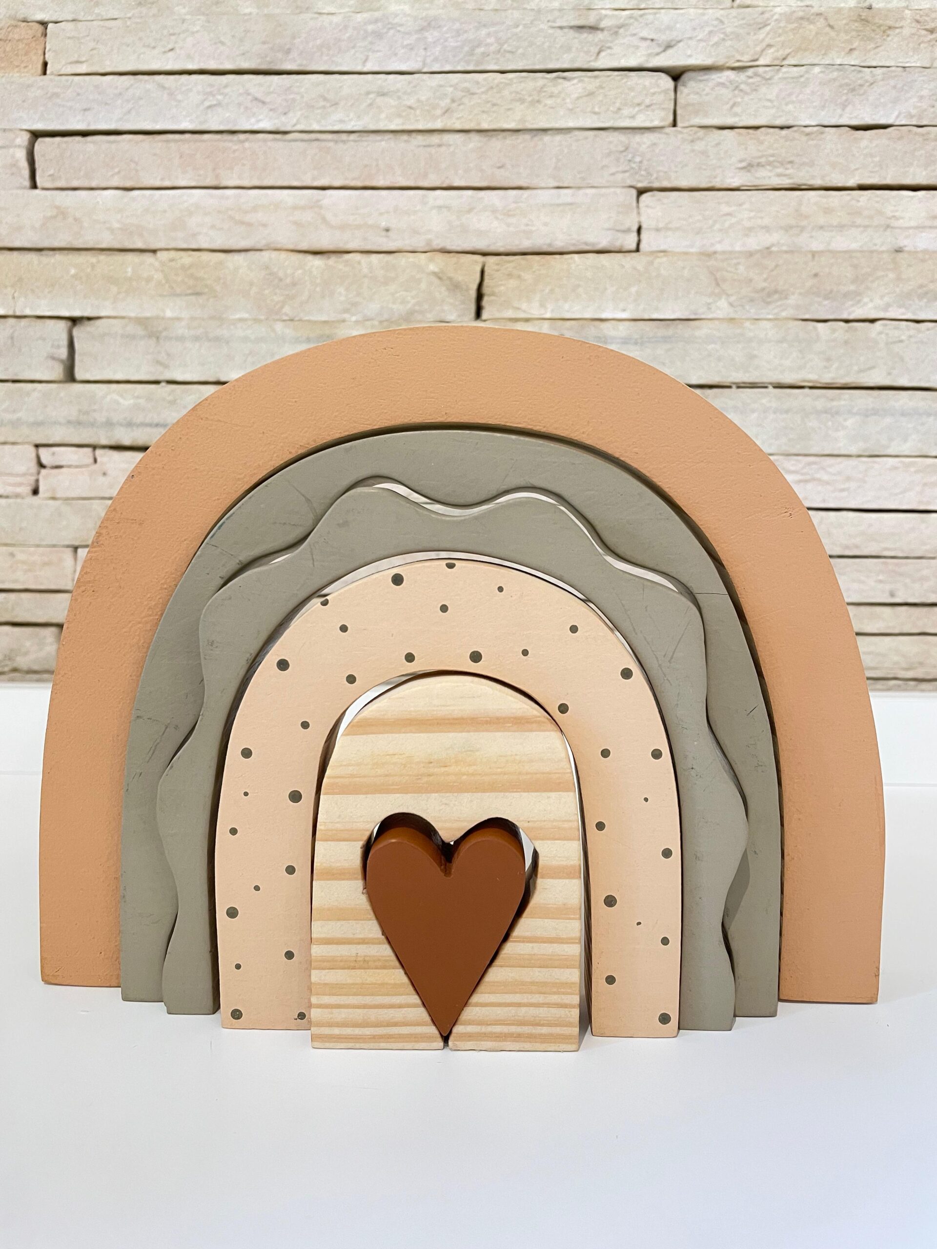 Lindo adorno de arco-iris nas cores terrosas.Ótima opção para colocar em nichos ou prateleiras.As cores podem ser personalizadas para encomendar.Medidas: L 21 x A 16 x P 2cmEntre em contato com a loja para escolher cor disponível.