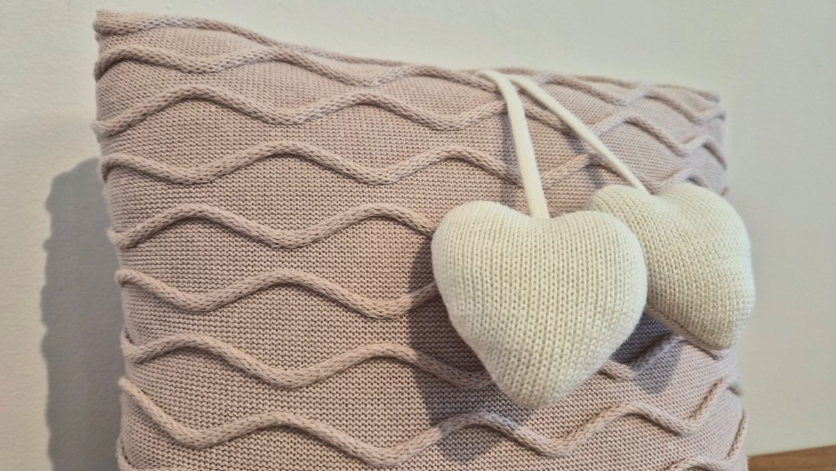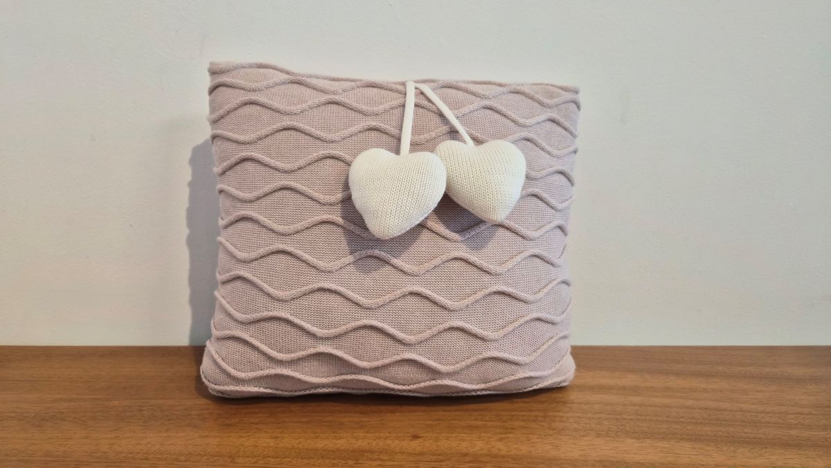 Conforto e beleza na medida certa nessa almofada de tricot Vancouver na cor rosa Una 30 x 30cm com pingente coração na cor natural.Perfeita!Consulte nossa equipe de vendas e tire suas dúvidas.