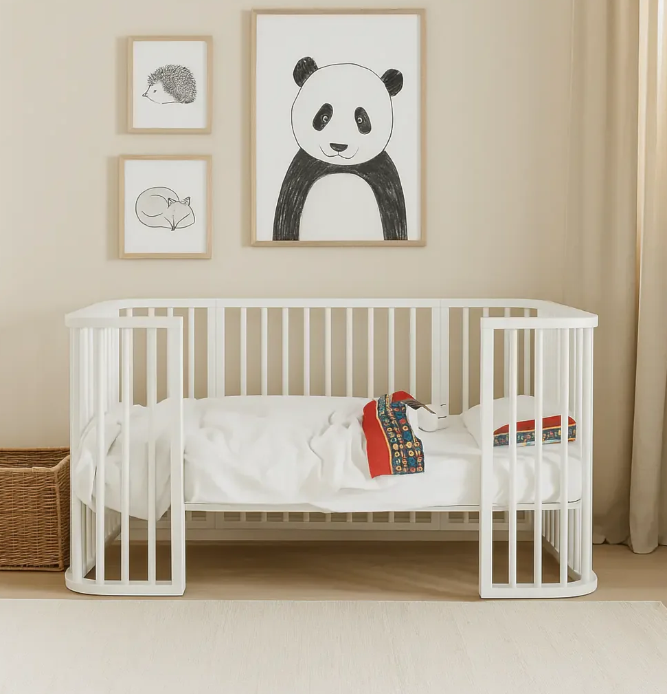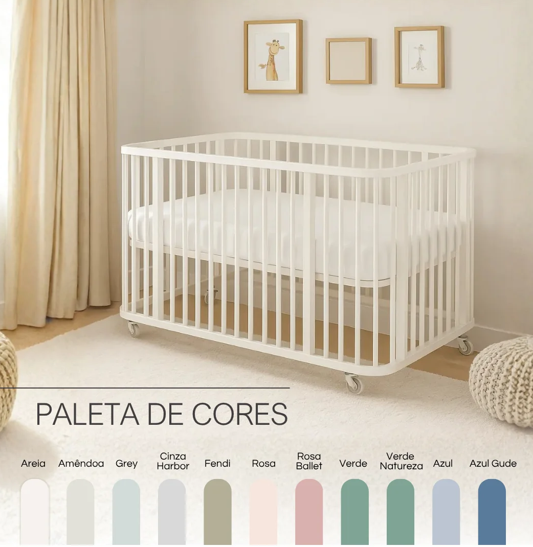 Berço Evolutivo 3 em 1 Fases: design funcional e elegante que acompanha o crescimento do bebê. Pode ser usado nas três etapas — mini berço, berço e mini cama — garantindo praticidade e longa vida útil. Acompanha colchão da 1ª fase e rodízios de silicone, que facilitam a movimentação sem danificar o piso. Compatível com colchão padrão americano (130 x 70 cm) nas fases seguintes. Disponível em acabamento laqueado ou com detalhes em madeira natural, é a escolha ideal para um quarto sofisticado, seguro e versátil.