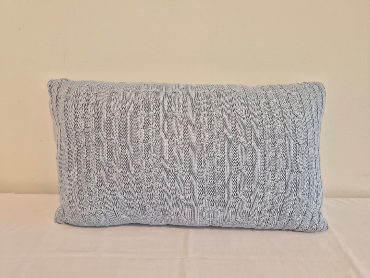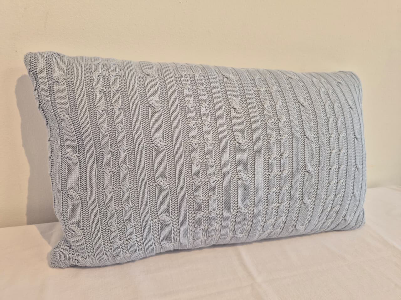 Almofada cabeceira para berço medindo 50 x 30 cm. Toda em tricot trança.Entre em contato com a nossa esquipe de vendas e encomende já a sua.
