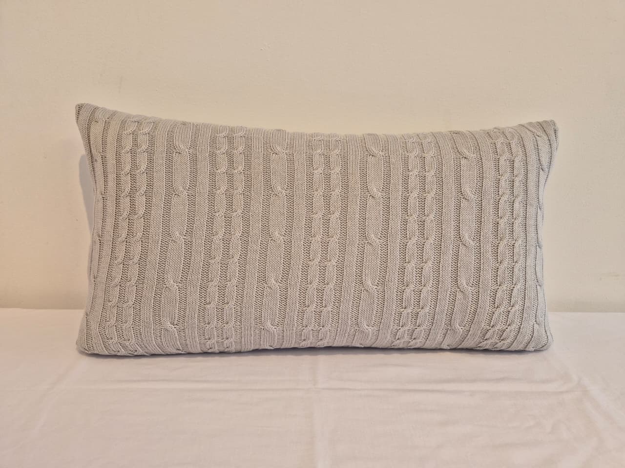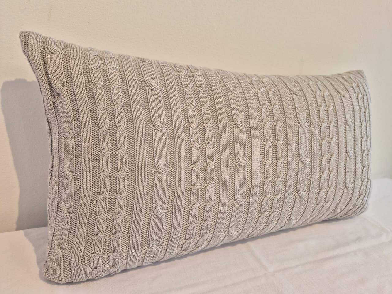 Almofada cabeceira para berço medindo 50 x 30 cm. Toda em tricot trança.Entre em contato com a nossa esquipe de vendas e encomende já a sua.