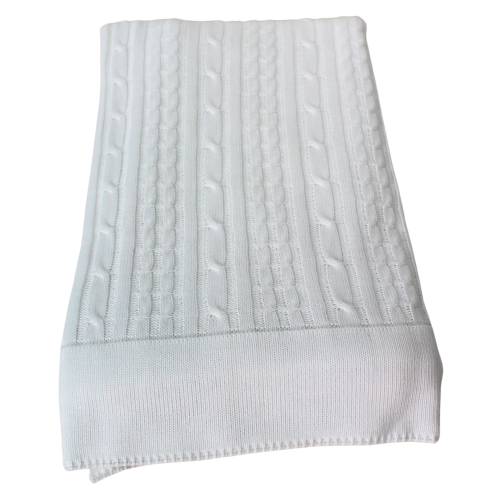 Medidas: 105x160cm.Trico trança branco.