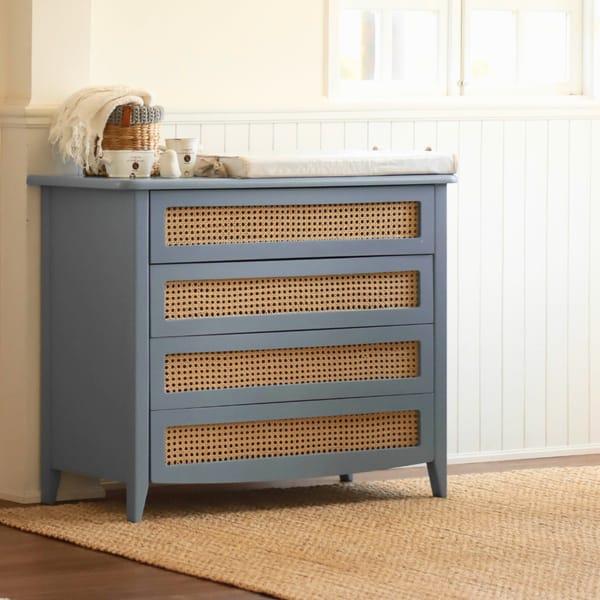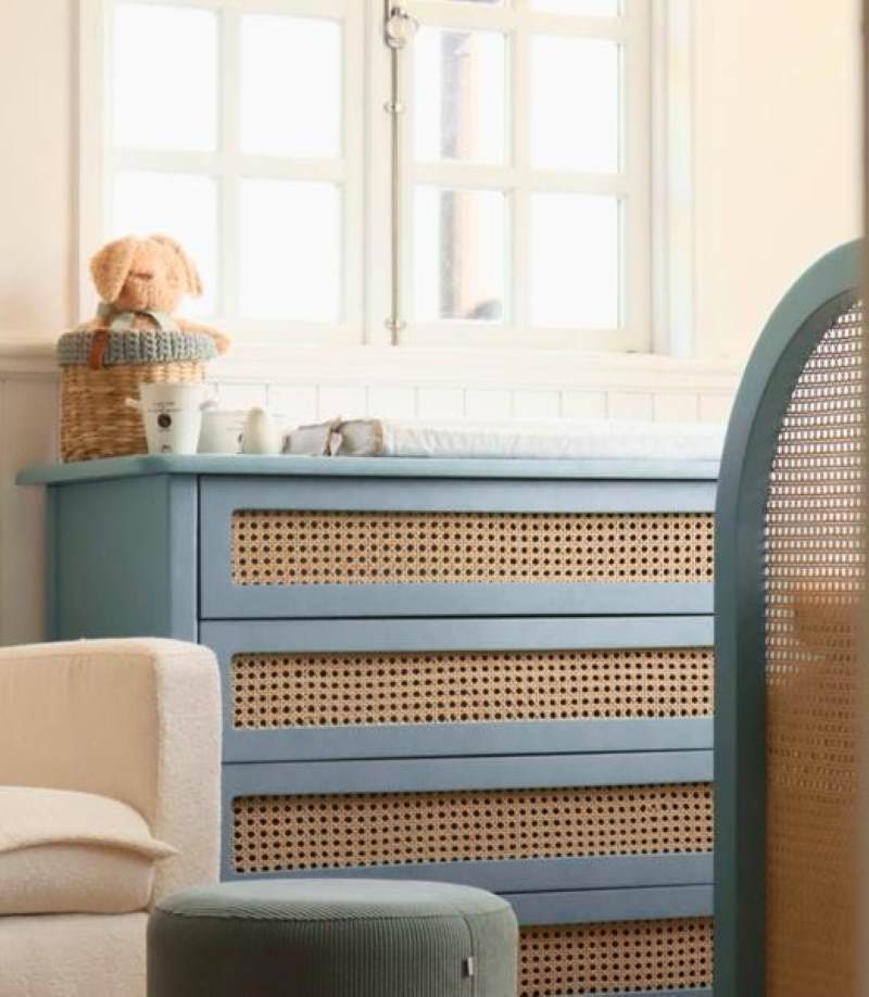 A Cômoda Luna Plus combina design contemporâneo com detalhes artesanais para deixar o quarto do bebê ainda mais acolhedor e elegante. Com acabamento em laca azul, ela traz um visual sofisticado e suave, perfeito para compor ambientes modernos e clássicos.