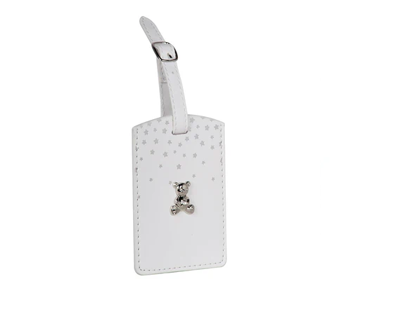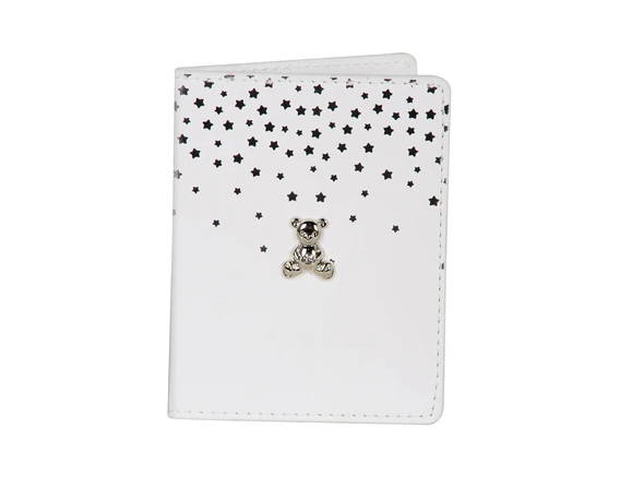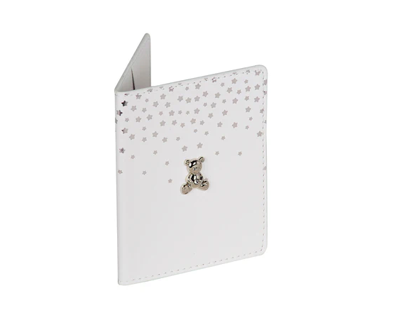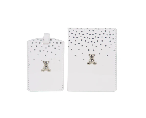 Capa para passaporte e Tag para bolsa ou mala em couro com aplique de ursinho em prata. Excelente opção para presente.