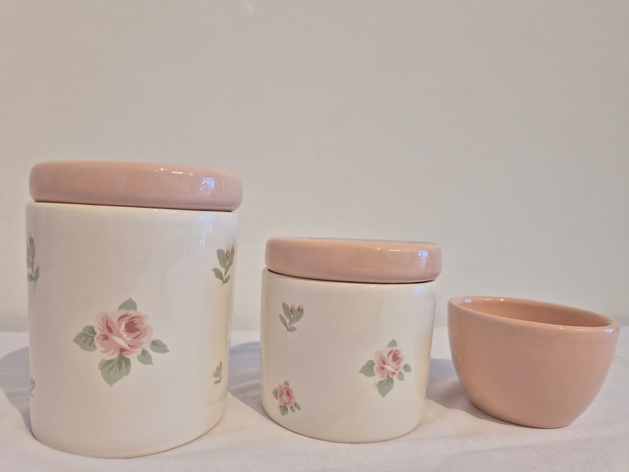 Kit ceramica 3pçs floral 7 tampas rosa velho