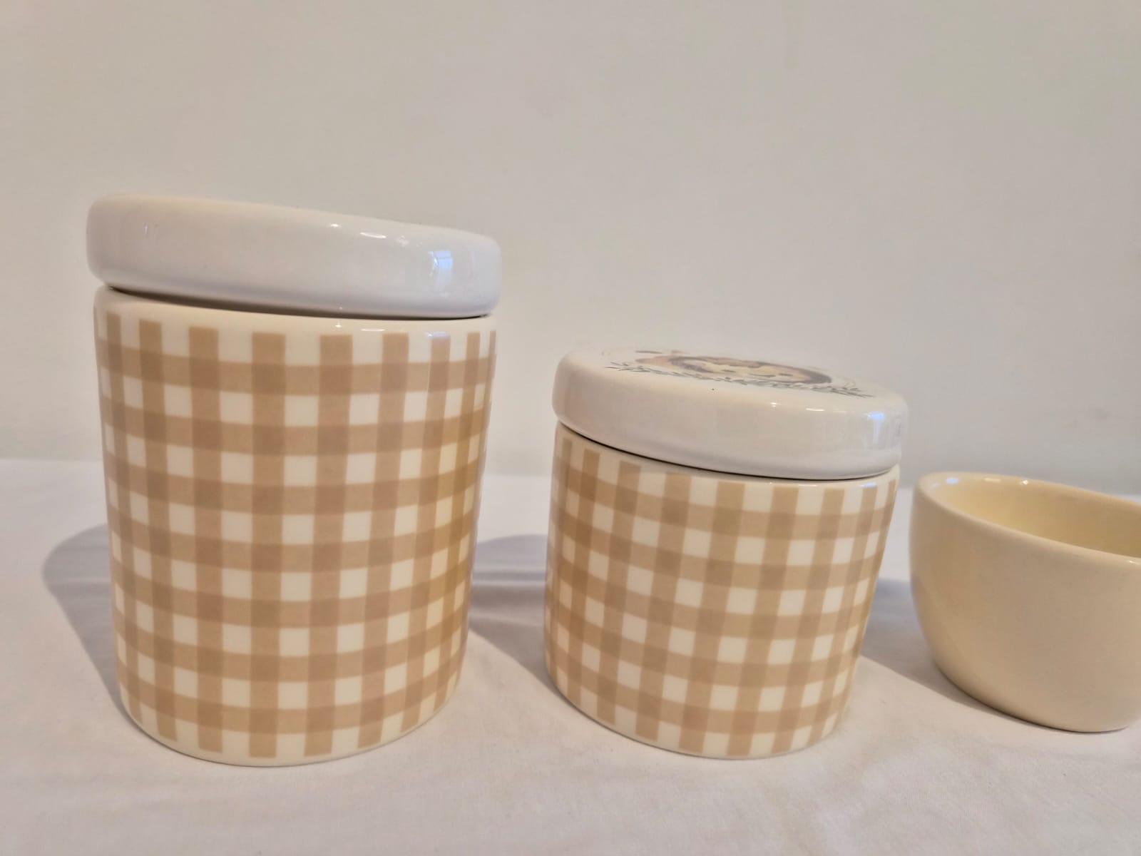 Kit ceramica 3pçs xadrez bege c/tampas leão RO