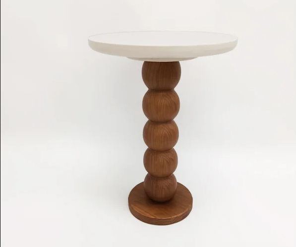 A Mesa Dot em madeira com o tampo laqueado cor areia. Ela se destaca pelo seu visual lúdico e elegante. Seu pé escultórico, formado por volumes arredondados em sequência, traz um toque moderno e sofisticado ao ambiente. Ideal para compor espaços afetivos como o quarto do bebê, salas de estar ou cantinhos de leitura com personalidade e delicadeza. Compacta e funcional, é perfeita para apoiar itens essenciais durante a amamentação, decorar com objetos especiais ou servir como apoio lateral em diferentes ambientes da casa. Uma peça curinga para quem valoriza design e praticidade no dia a dia. MEDIDAS: Diâmetro 0,35 x alt 0,48 * ATENÇÃO: O frete ficou caro? entre em contato conosco para lhe ajudar. *