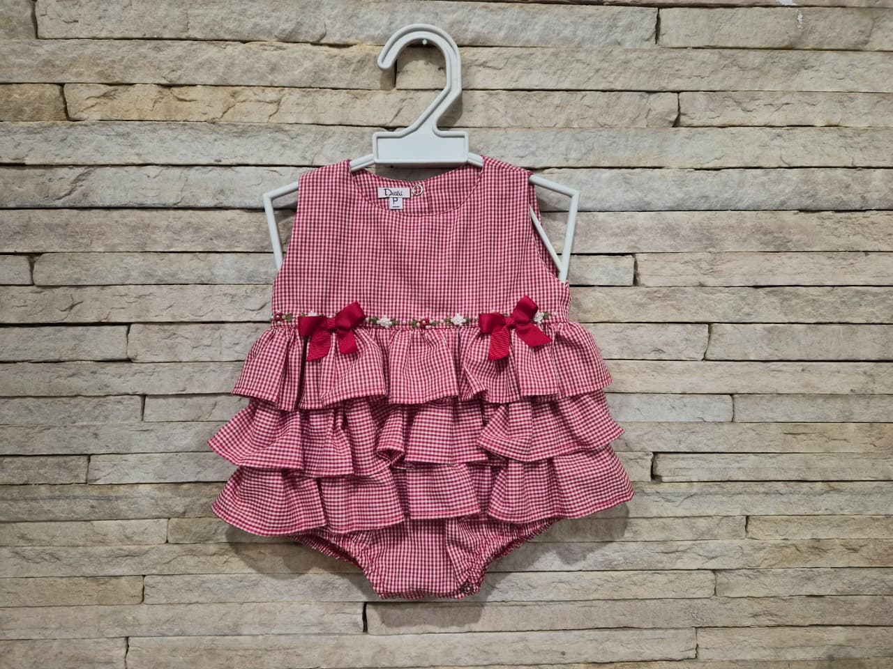 Tamanho G para bebês de 6 a 9 meses. Xadrez vermelho