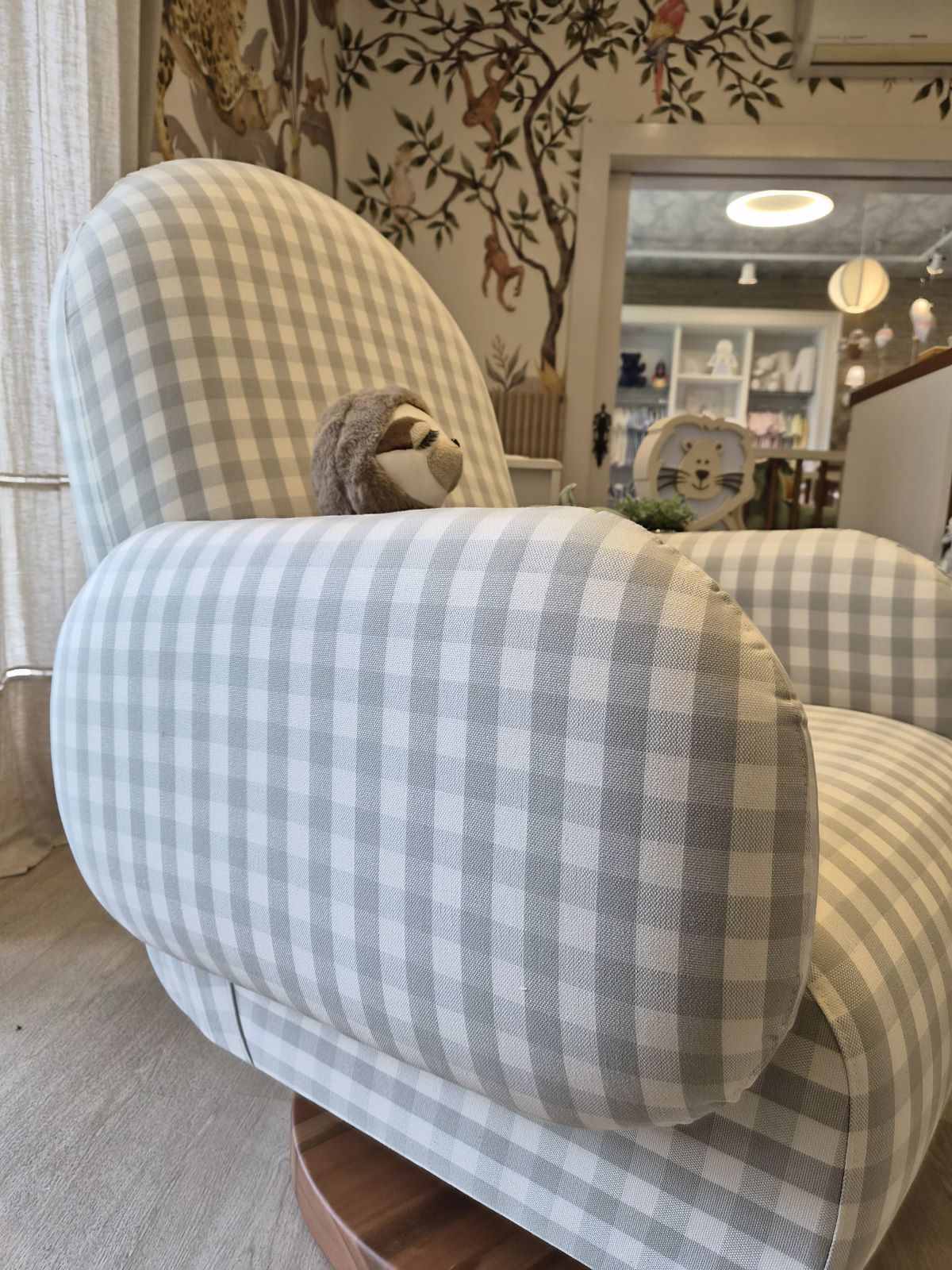 A Poltrona de Amamentação Curve foi desenvolvida para proporcionar um conforto excepcional e um design moderno para os momentos de amamentação. Ela oferece duas opções: o disco em madeira + giro sem saia, que garante praticidade e movimento suave, ou pés fixos em madeira, mantendo um visual mais clássico e sofisticado, também sem saia. Ambas as opções combinam elegância e funcionalidade, adaptando-se perfeitamente ao seu espaço. Puffe sempre vendido separadamente.