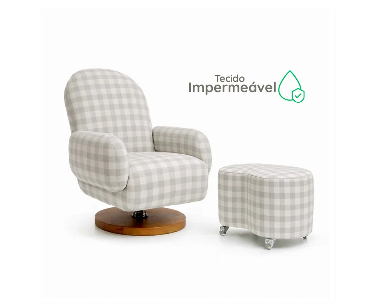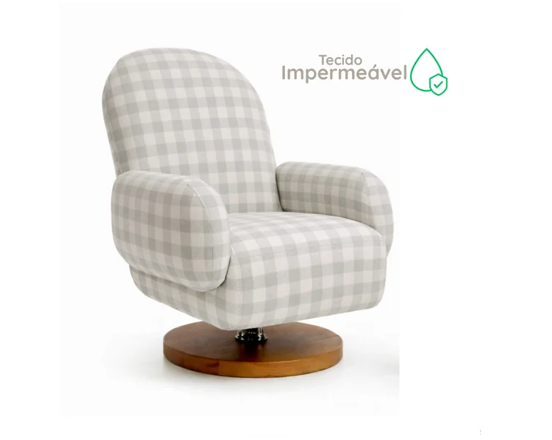 Poltrona Curve Pé giratório e balanço Xadrez Verde IMPERMEÁVEL