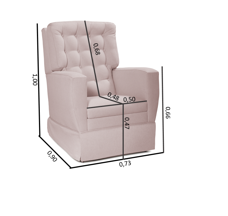 Poltrona de amamentação, com balanço e saia. Medidas: (A) 100 cm (L) 0,73 cm (P) 0,73 cm