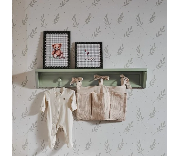 Conta com cabideiros integrados, ideais para pendurar roupinhas, acessórios ou itens decorativos, facilitando a organização do dia a dia. O design delicado, com acabamento arredondado e visual atemporal, harmoniza facilmente com diferentes estilos de decoração, especialmente quartos de bebê e infantil.