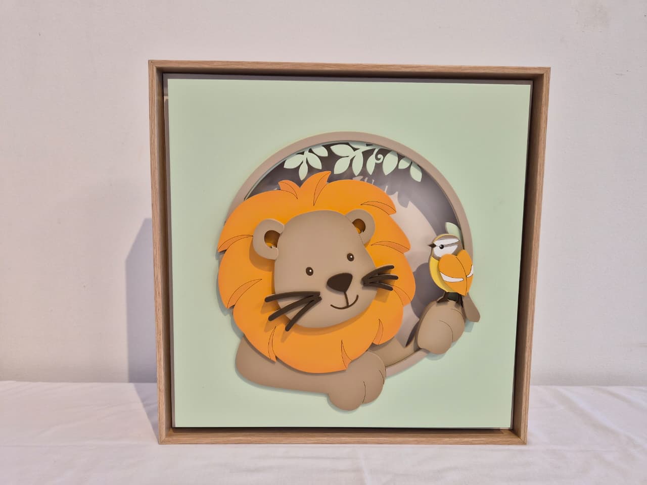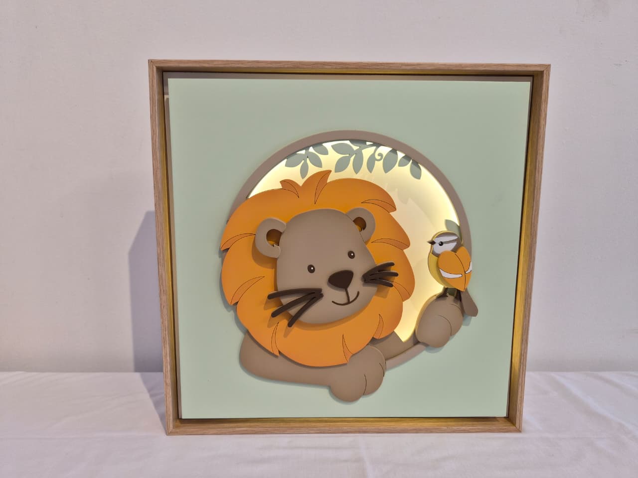 Quadro caixa charme carvalho led Safari Leão – RH