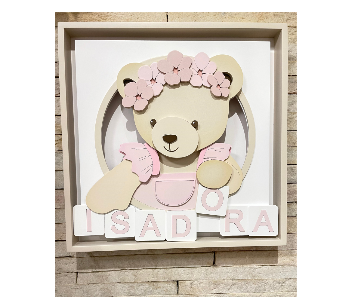 Quadro caixa charme ursinha c/ dadinhos – RH