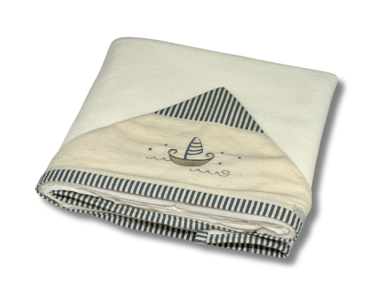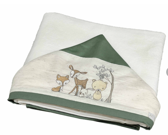 A toalha macia e sofisticada é perfeita para secar o bebê depois de um banho gostoso. É confeccionada em tecido atoalhado e forro de fralda macio e absorvente para a pele delicada do bebê. Além disso, possui capuz com bordado. O capuz ajuda a manter a cabecinha aquecida e protegida.