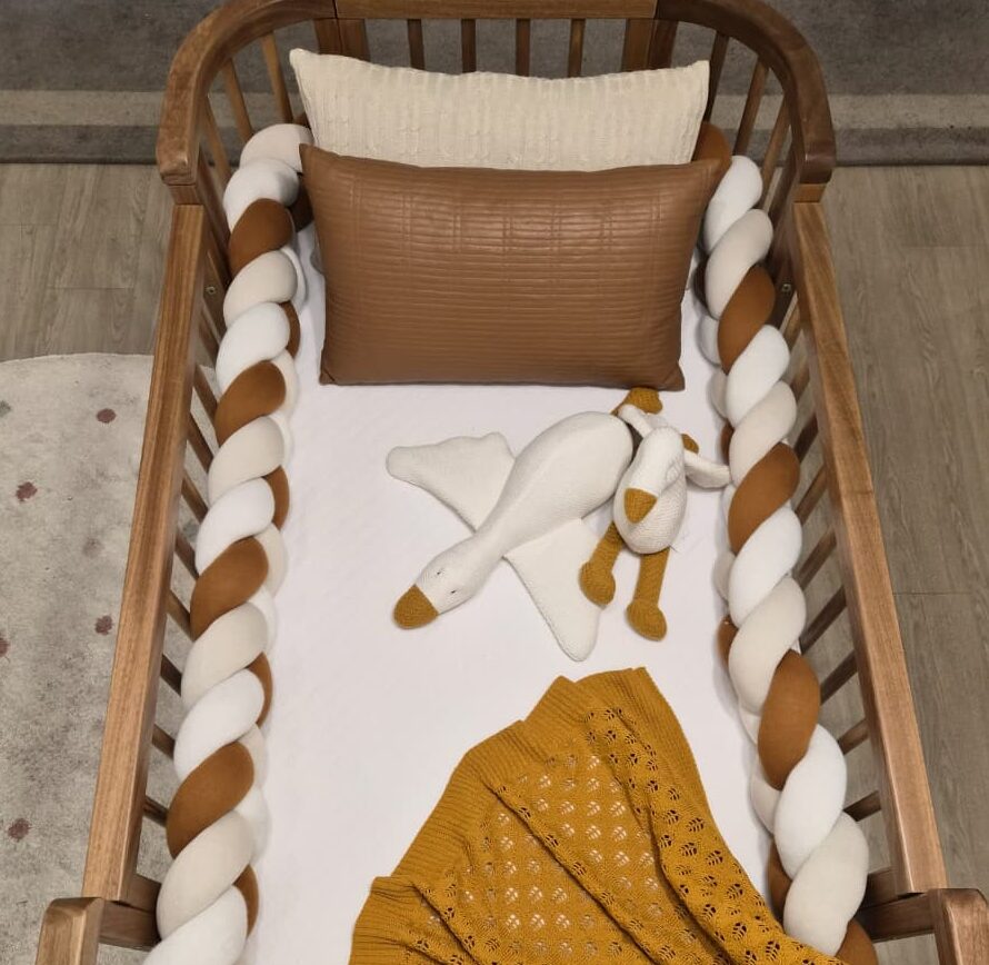 Tricolor: Off white, bege geada e cobre claroNovo protetor de berço no formato de trança com 4metros. Cobre todos os lados de berços com medidas no padrão americano ou nacional. Serve no berço Crescer da Sleeper.- Lavar separadamente- Processo muito suave- Uso de sabão neutro- Não usar amaciante ( usar vinagre de maçã no lugar do amaciante )- Secagem por gotejamento na horizontal na sombra- Tranças de até 4 metros podem ser lavadas em máquinas com capacidade para 15 KgConsulte nossa equipe de vendas e tire suas dívidas.