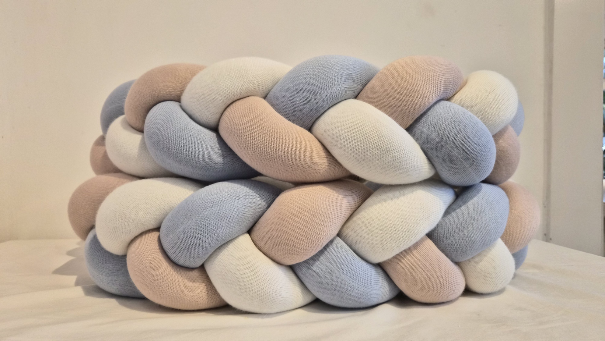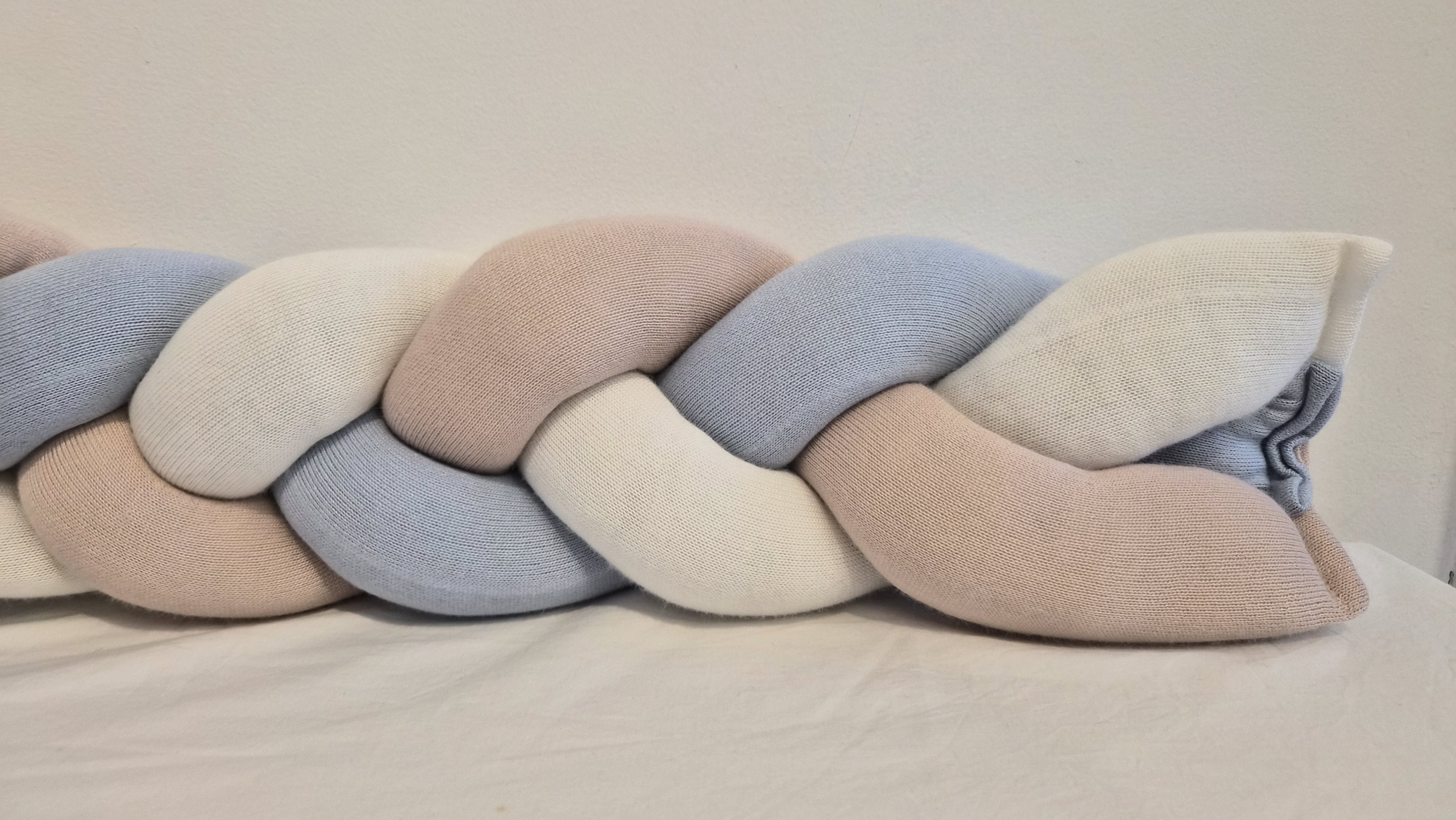 Tricolor: Off white, rosa una e azul salina.Novo protetor de berço no formato de trança com 4metros. Cobre todos os lados de berços com medidas no padrão americano ou nacional. Serve no berço Crescer da Sleeper.- Lavar separadamente- Processo muito suave- Uso de sabão neutro- Não usar amaciante ( usar vinagre de maçã no lugar do amaciante )- Secagem por gotejamento na horizontal na sombra- Tranças de até 4 metros podem ser lavadas em máquinas com capacidade para 15 KgConsulte nossa equipe de vendas e tire suas dívidas.