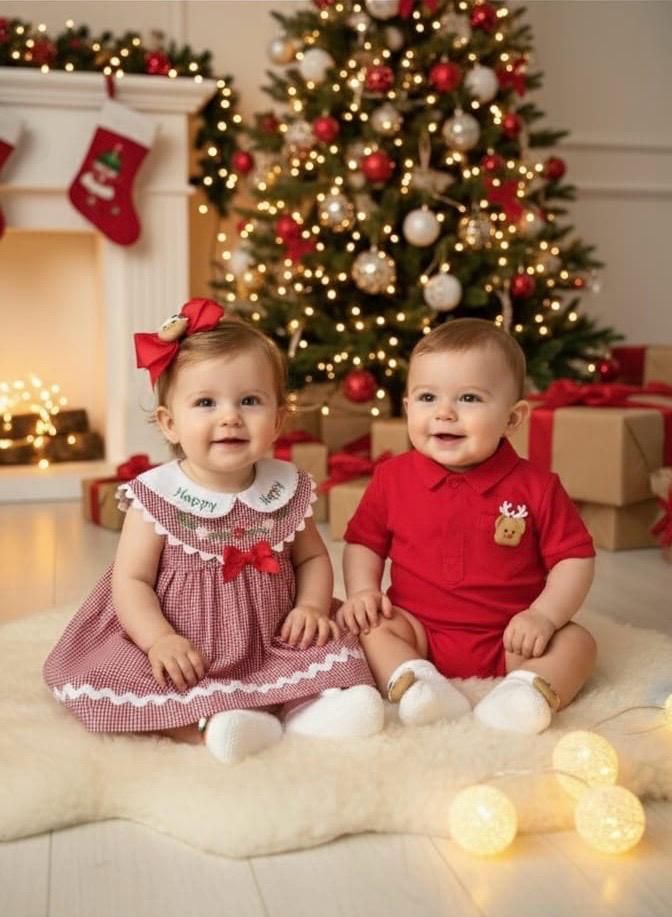 Tamanho G para bebês de 6 a 9 meses Xadrez vermelho com cianinha.